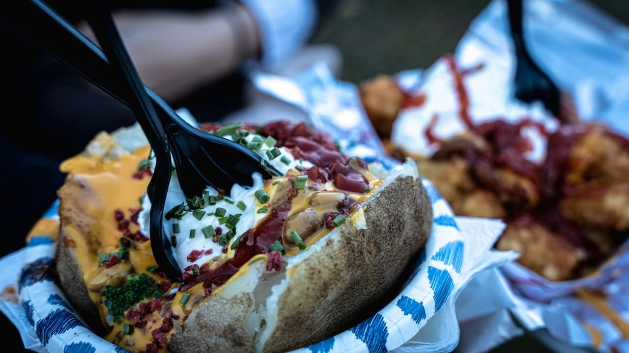 Baked potatoes with toppings