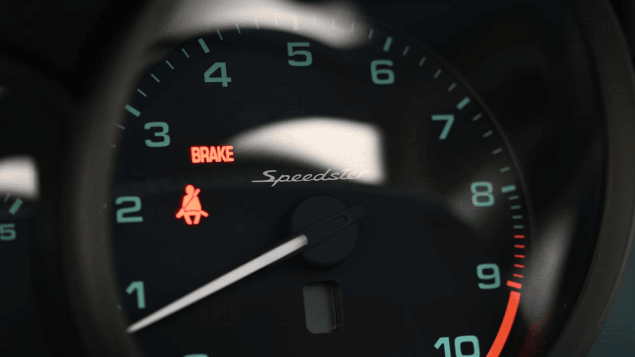 A red brake light could mean your brake fluid is low or there's a serious issue with the system. It can also indicate the parking brake is still engaged, so double-check that first. If the light stays on, don't keep driving.