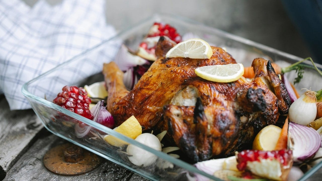 Rotisserie chicken and roasted vegetables