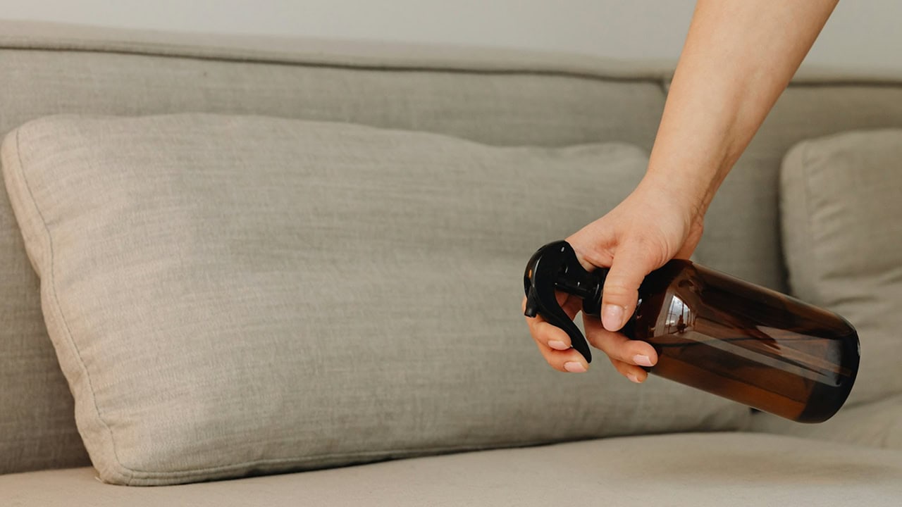 Spraying the Couch With Linen Spray