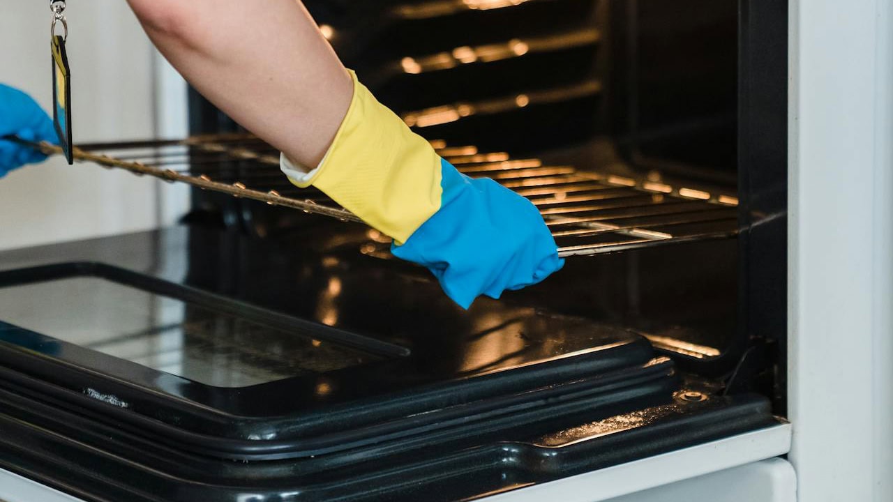 Instead of harsh oven cleaners, baking soda handles built-up residue safely. Mixing it with water into a paste and letting it sit overnight loosens stuck-on grease.