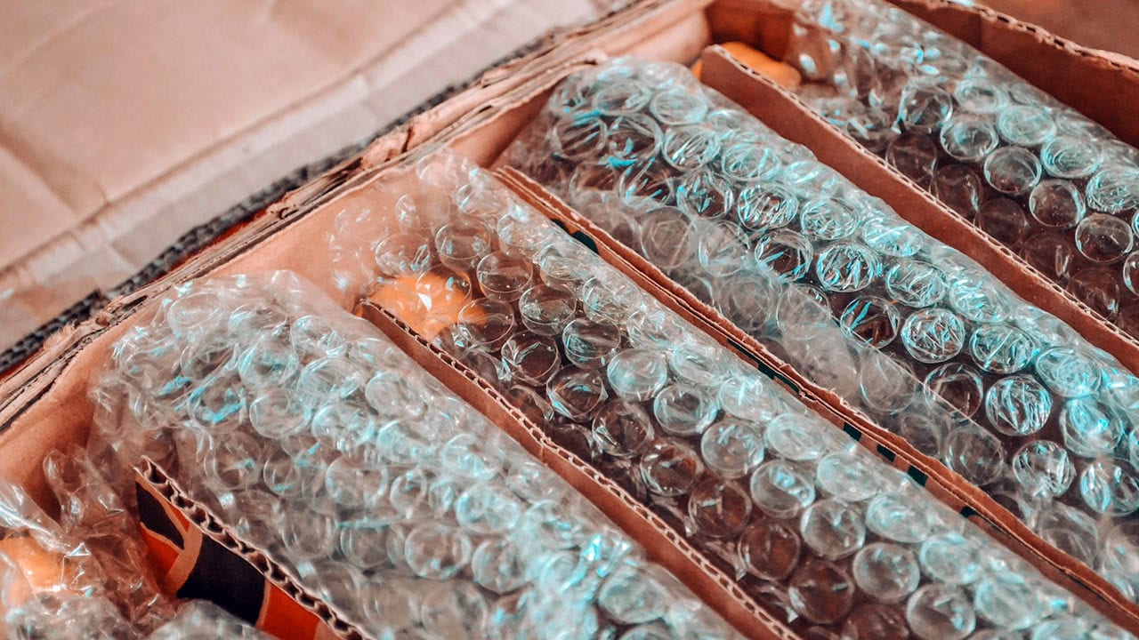 Bubble wrap, air pillows, and packing paper from online orders all got stored in a bin in the closet. Anytime I needed to ship something, I had what I needed without buying new.