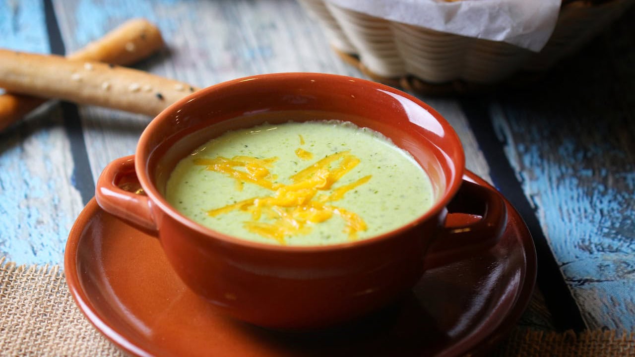 Make a simple broccoli cheddar soup with broth, broccoli, and cheese. Stir in shredded chicken or sliced sausage to make it more filling without needing bread on the side.