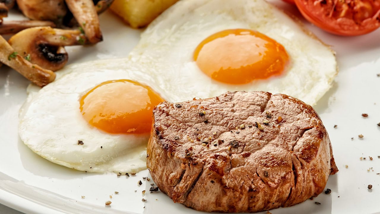 Steak-and-egg night for "brinner"