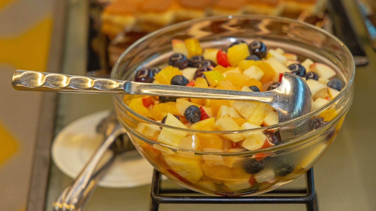 Chop into bite-sized pieces. In a small bowl, whisk 2-3 tablespoons honey with the juice of one lime and a pinch of salt. Toss the fruit with the dressing right before serving. It tastes fresh and bright, uses affordable produce, and balances out all the casseroles on the table.