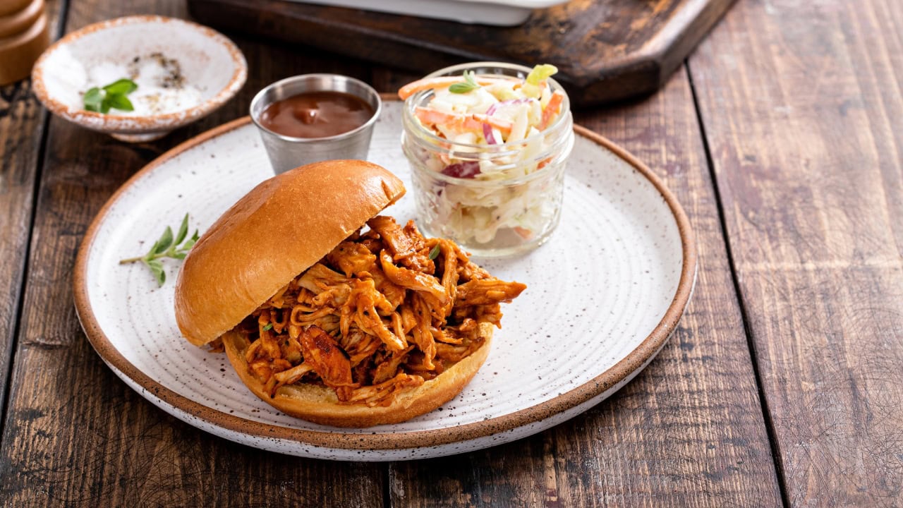 Slow cooker BBQ pulled chicken sandwiches