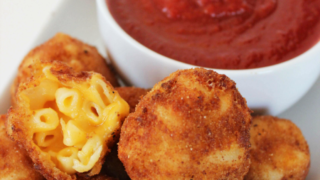 For an appetizer the kids will love (who am I kidding - EVERYONE loves these) make creamy on the inside, crunchy on the outside mac and cheese bites!