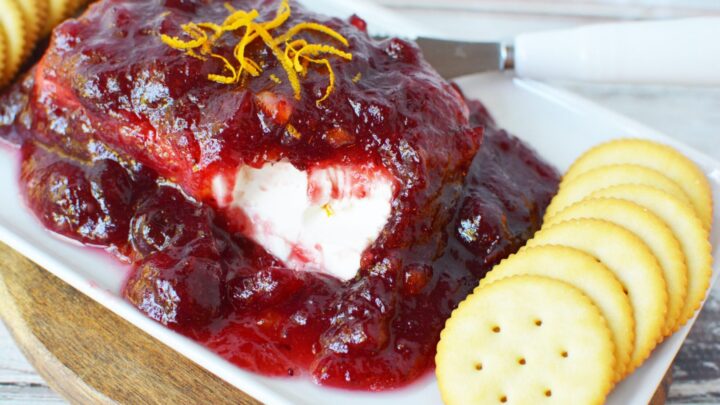 This elevated appetizer Recipe is a beautiful and delicious way to start any dinner party or get-together. The bright color of the cranberries is extra festive!