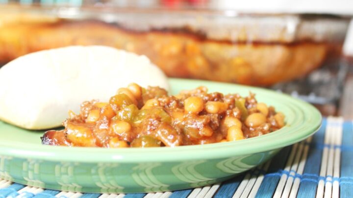 This baked bean casserole is heavenly, it has ground beef, bacon and beans, it is very hearty and is great for a side dish or the main course! It is very filling and you get the added benefit of the fiber from the beans.