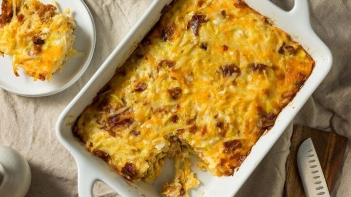 This Cheese, Bacon and Potato Breakfast Casserole Recipe is an easy way to feed your family or a whole crowd for breakfast or brunch.