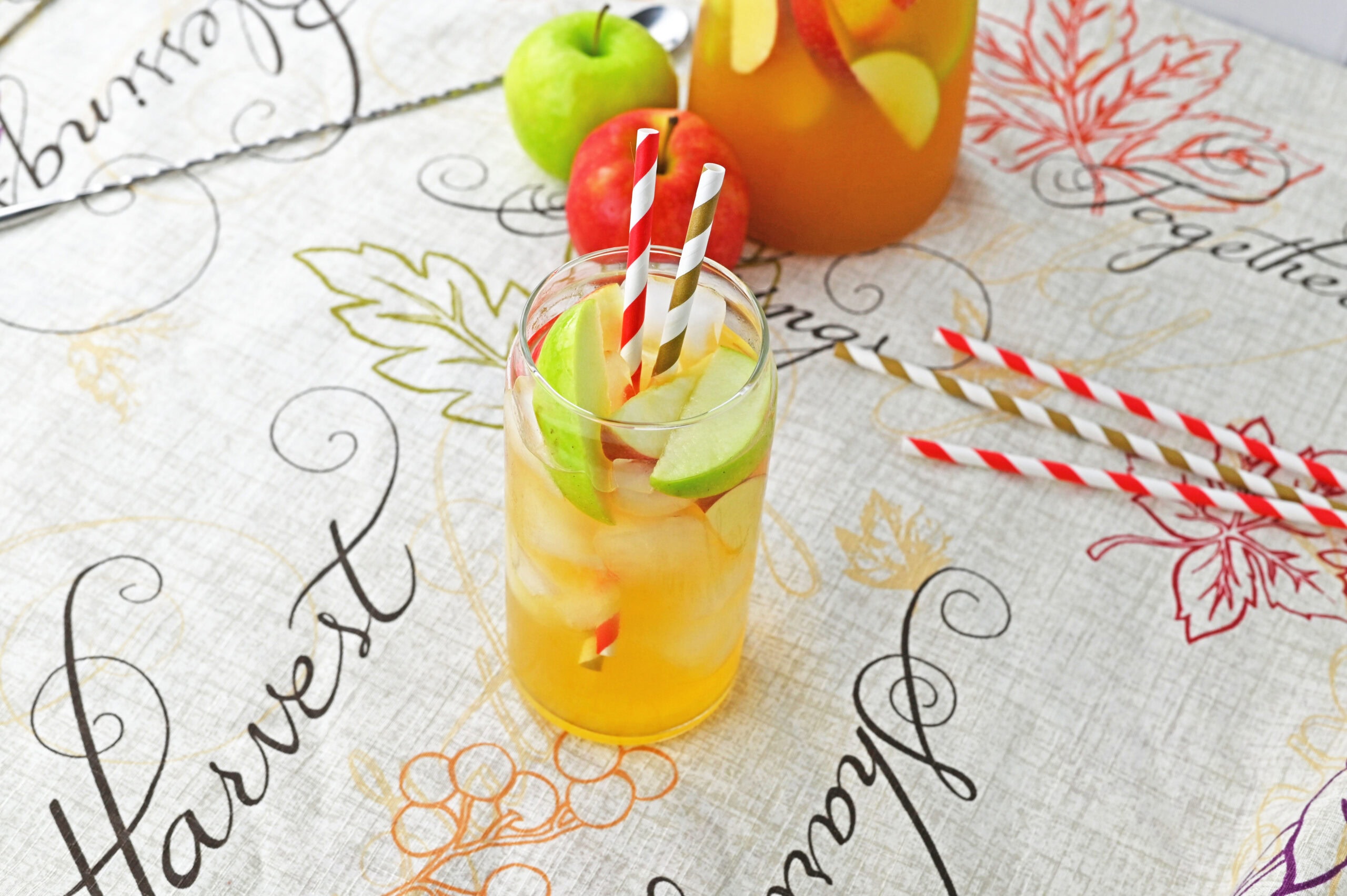 - Slice the apples thinly so they float better and look prettier in the pitcher.