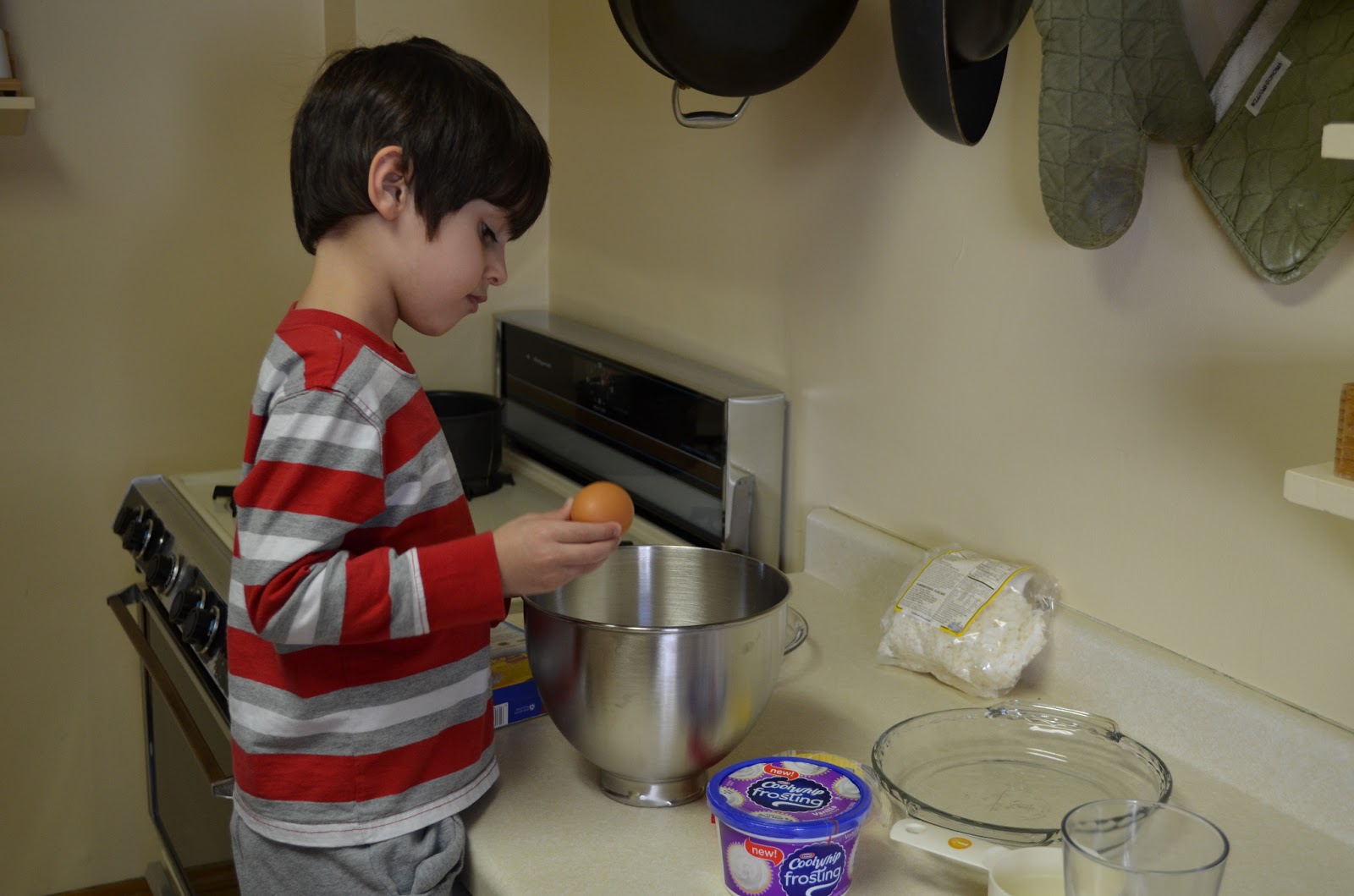 Before we started baking, I actually had to get the supplies. You can see the Google+ story in pictures of my whole trip to Walmart to get Cool Whip Frosting here.