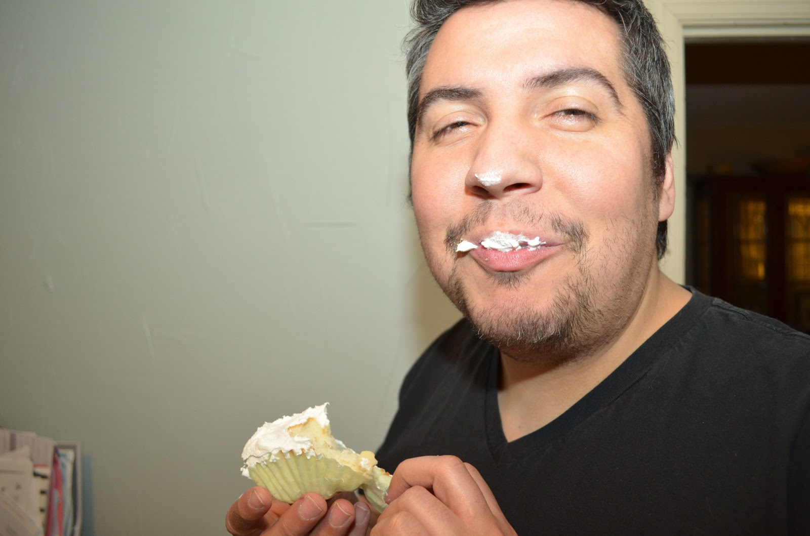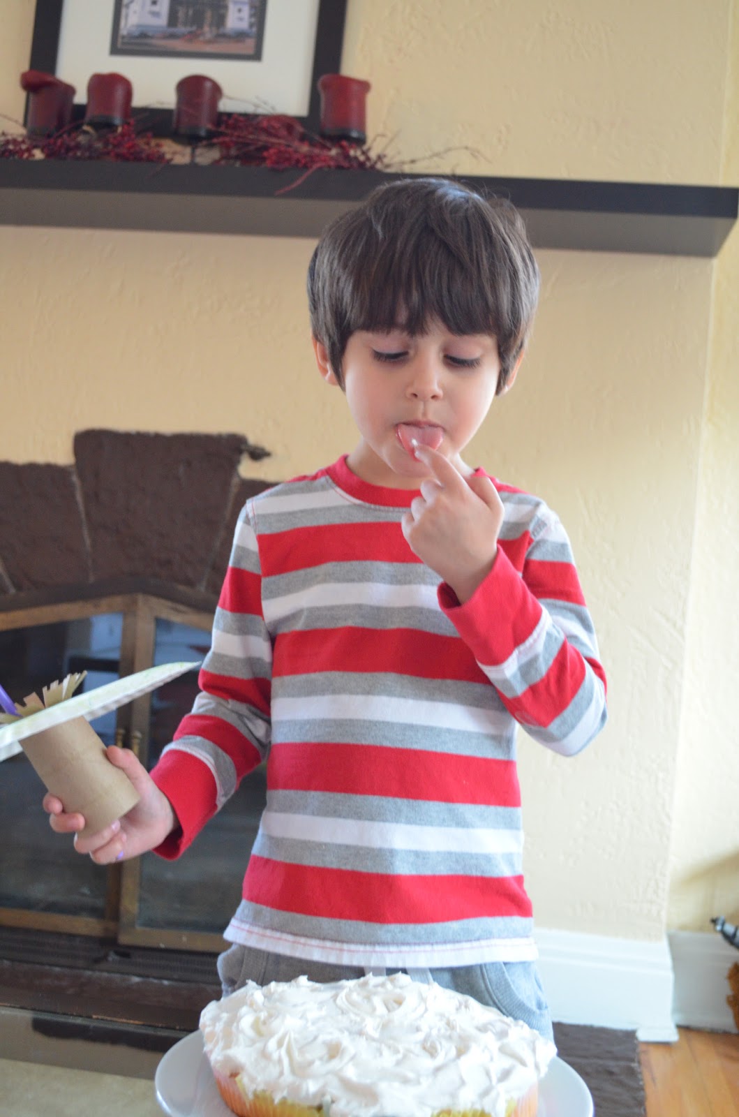 The only thing left to do was enjoy! Someone just couldn’t wait for cake pictures to be taken and had to sneak some of the yummy Cool Whip Frosting!