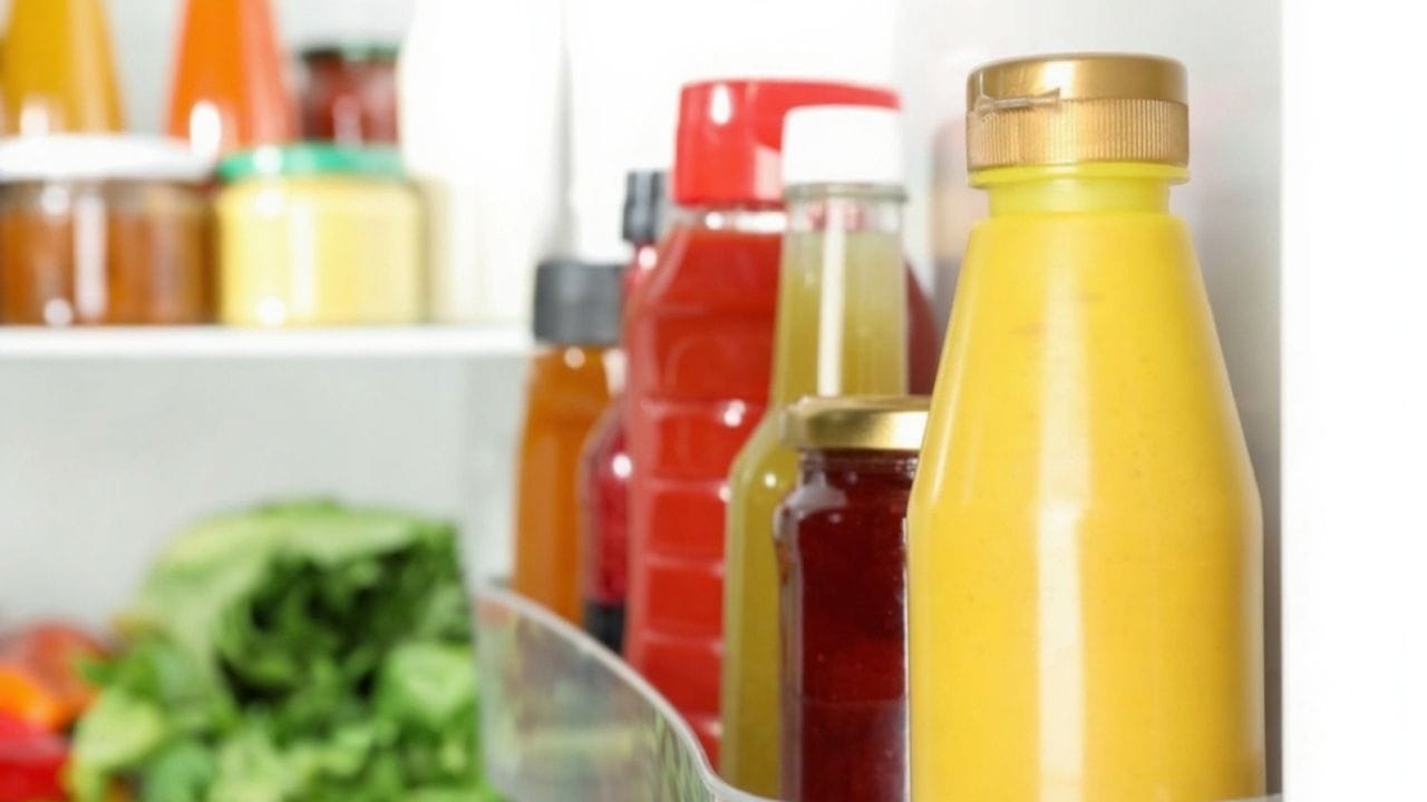 Door shelves become condiment graveyards. Group by type-sauces on one shelf, dressings on another, sweet spreads together. Put the two or three you use most often in a small turntable on a main shelf. They'll stop crowding out real food, and you'll stop buying a third mustard because the first two were hiding.